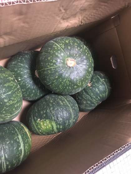 今年初めての「かぼちゃ」を使った献立です。ごろんとしたかぼちゃが7個納品されました。スチコンを使って煮つけにします。