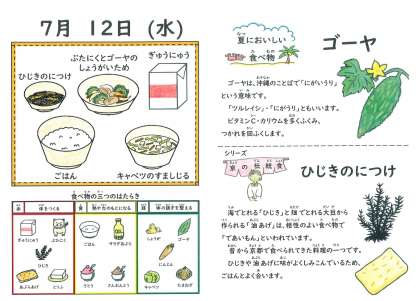 初めてゴーヤを食べたという1年生がたくさんいました。「にがい」「おいしいやん」「あまい味もする」など、様々な感想が聞かれました。夏限定、大人な味のゴーヤ、ぜひご家庭でもご賞味ください。