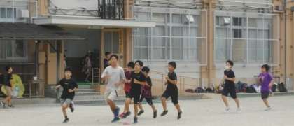 6年生が週2回、登校後にそれぞれのめあてにむかって走ります。