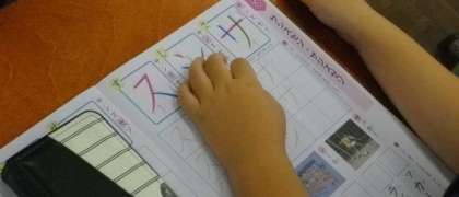 1年生は、カタカナの練習に取り組んでいます。