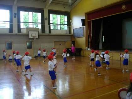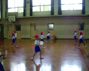1年生が、エイサーの練習をしています。