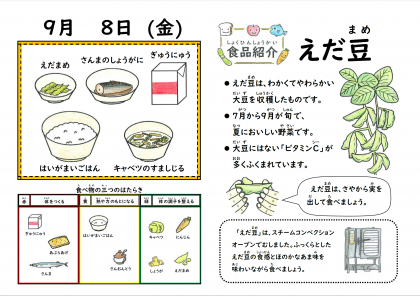 胚芽米ごはん、さんまのしょうが煮、えだまめ、キャベツのすまし汁、牛乳
