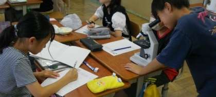 今日は顕微鏡を使って観察をしています。