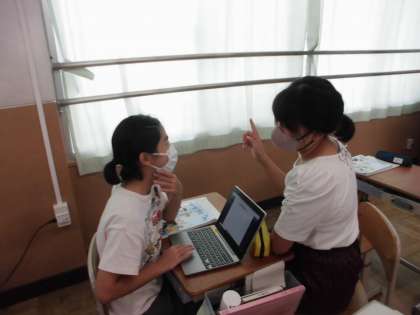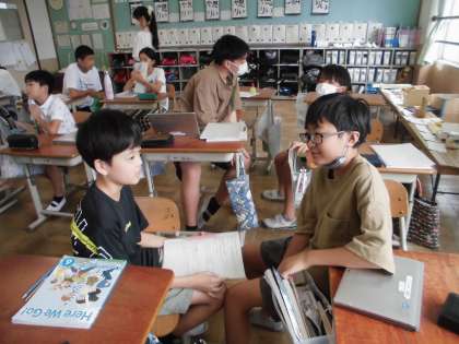 6年生は外国語の学習で夏休みの出来事の感想を伝え合いました。What did you do in summer? I went to the sea. I ate a snow cone.など夏休みの出来事がスムーズに言えるようになってきました。How was it? It was delicious.など感想も言えるようになりました。
