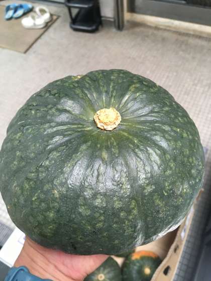 北海道産のかぼちゃが届きました。ほどよい厚さに切ってみそ汁に入れる予定です。