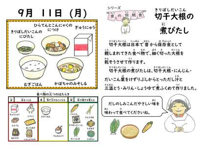 給食時間が始まりました。ごはんによく合う「平天とこんにゃくの煮つけ」、みその塩気にほどよい甘さが合わさった「かぼちゃのみそ汁」ともに子どもたちに大人気でした。今日もおいしい給食、ごちそうさまでした。