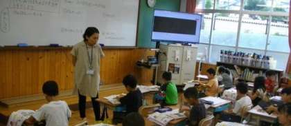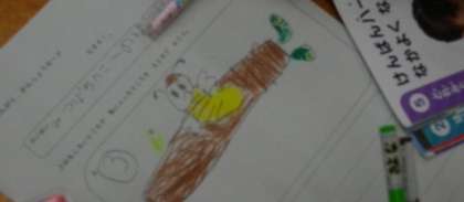1年生は、音楽を聴いて、想像したことを絵に表しています。