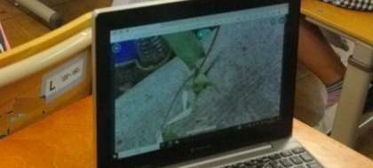 1年生はアサガオの観察をしています。これまで写真で記録してきた内容をつなげてみています。