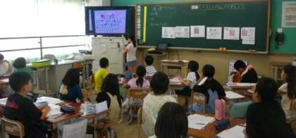 4年生は、算数で、面積の求め方をグループごとに話し合って交流しています。