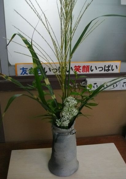 地域の方から、ススキやフジバカマをいただきました。