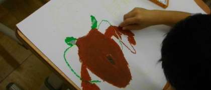 1年生は、お話の絵の制作に取り組んでいます。