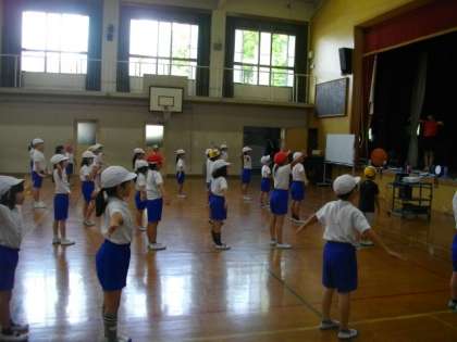 1・2年生が、全校ダンスの練習をしています。楽しそうですね。