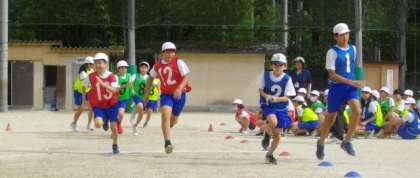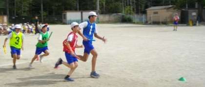 6年生がリレーの練習をしています。