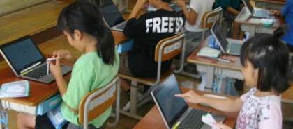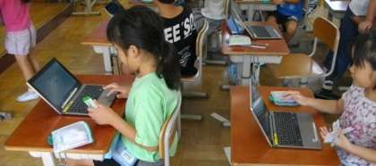 2年生は、タブレットを前にしてなにやらつぶやいています…