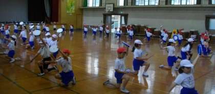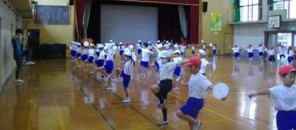 1・2年生が、エイサーの練習をしています。動きがそろってきましたね。