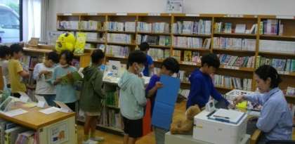 3年生は、静市学習情報センターで本を借りているところでした。