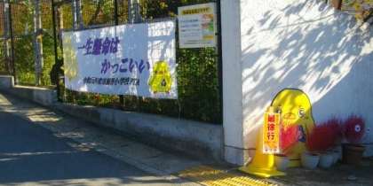 登下校時は、通行する児童数が多くなります。校門前の道路は、比較的幅が狭く、見通しも決してよい道路ではありません。また、朝は近隣の方々が、お車で出勤される時間帯とも重なっています。
