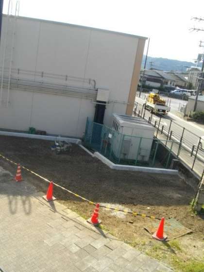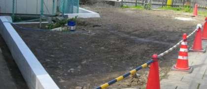 マンホールトイレを設置するための工事が進んでいます。整地が終わりました。