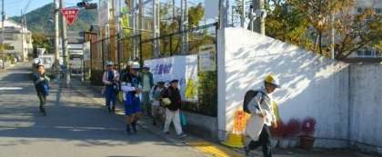 登下校時は、通行する児童数が多くなります。校門前の道路は、比較的幅が狭く、見通しも決してよい道路ではありません。また、朝は近隣の方々が、お車で出勤される時間帯とも重なっています。荷物が多くなった場合や急な天候不順等による送迎のため