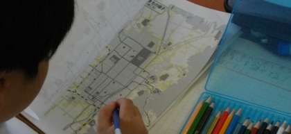3年生は、京都市の土地の様子について、色分けをしたり地図記号を見分けたりして分類をしています。
