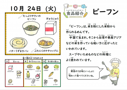 米から作られたビーフンを使ったたっぷり野菜のビーフンは、社会見学から帰ってきた5年生からも「食べやすい!」「おいしい!」と好評でした。今日もおいしい給食ごちそうさまでした。