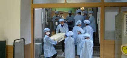 給食の準備が始まりました。