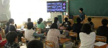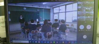 洛北中学校と校区の小学校の6年生がオンラインでつながり、洛北のWA(小中一貫・小々連携)を行いました。