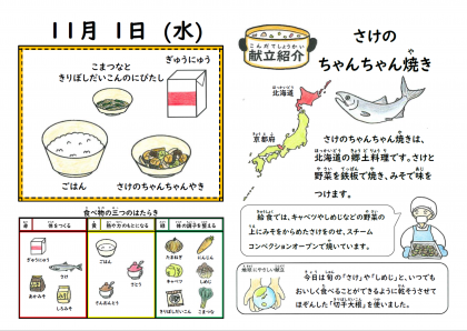 「ちゃんちゃん焼き」は、さけと野菜を鉄板で焼き、みそで味を付けた北海道の郷土料理です。生臭さも少なく、おいしくいただけました。