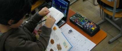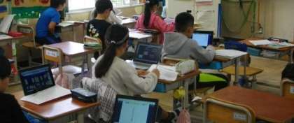 3年生は、姿を変える食べ物について調べたことをタブレット上で整理し、最後は、作文用紙にまとめています。