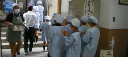 給食の準備が始まりました。