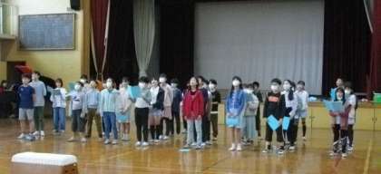 6年生と5年生が、学習発表会に向けて練習に取り組んでいます。