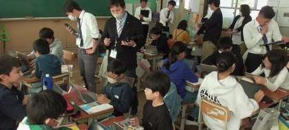 6年生の社会科学習の様子です。解体新書は、だれが、どのようにして完成させたのか、資料から読み取ったことをもとに意見交流をしています。