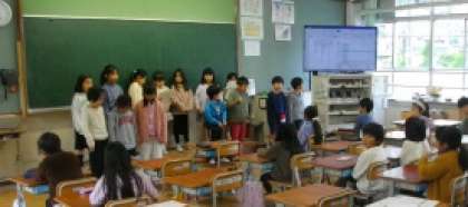 先日、2年生と3組との交流がありました。今日の中間休みには、3組教室を訪ねて一緒に遊んでいました。