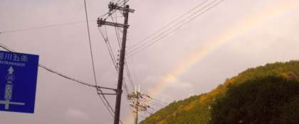 朝から時折小雨が降っています。西の空に虹がかかりました。