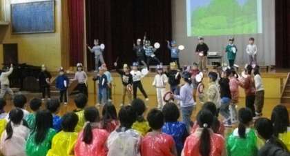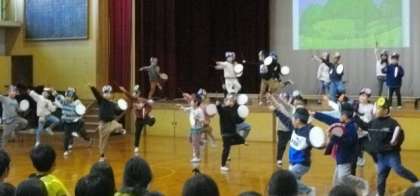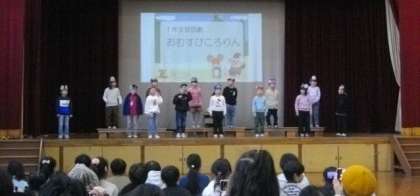 みんなで一緒に考えた動きを楽しみながら、しっかりと声を出すことをがんばりました。音楽で学習した「なかよし」や「やまびこごっこ」、体育で学習したリズム遊びも披露しました。