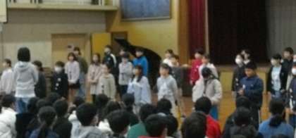 「クラッピングファンタジー」「威風堂々」「キリマンジャロ」の合奏に、5年生としての思いを込めて演奏しました。合唱「ビリーブ」「はじまりの歌」では、残り半年を仲間と共に新たな気持ちで進んで過ごしていきたいという決意を込めています。