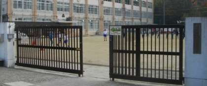 運動場東側のブロック塀撤去・アルミ等フェンス新設を進めるにあたり、運動場の一部が作業場となり若干狭くなっています。校門付近でボール遊びをした場合、外にでることが想定されますので、当面、登下校時は「小門」のみを開けることとします。