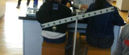 6年生は、理科で、てこのはたらきについて調べるために、実験をしています。