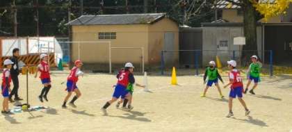4年生がタグラグビーに取り組んでいます。