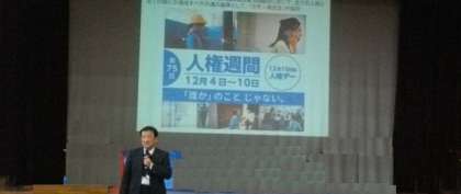 西田校長先生から、人権週間について紹介があり、笑顔あふれる楽しい学校をつくるために、一人一人が、何ができるかをしっかり考えて行動してほしいというお話がありました。
