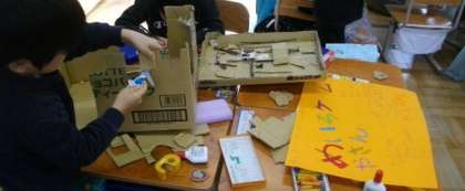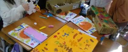 1年生は、生活科で行う「秋のおまつり」にむけて、看板やお楽しみゲームを作っています。