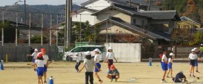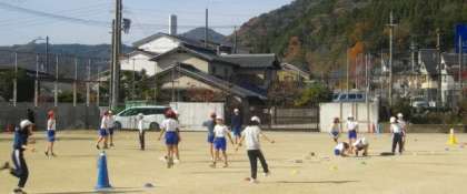 4年生は、運動場でなわとびに取り組んでいます。