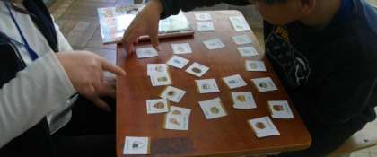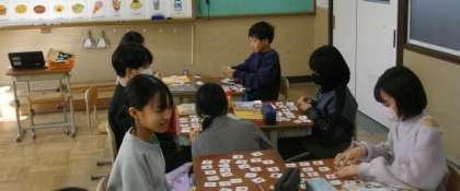 5年生は、好きな食べ物や紹介したい食べ物について紹介をするために、カードを使いながら活動を進めています。