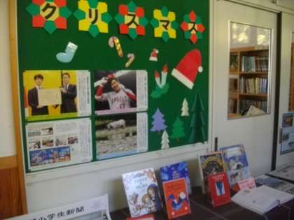 静市学習情報センターの入り口に、季節の本の紹介コーナーがあります。今月はクリスマスの特集です。