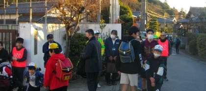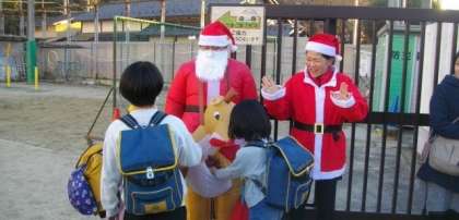 子どもたちが下校する時間に合わせて校門前で見送っていただきました。