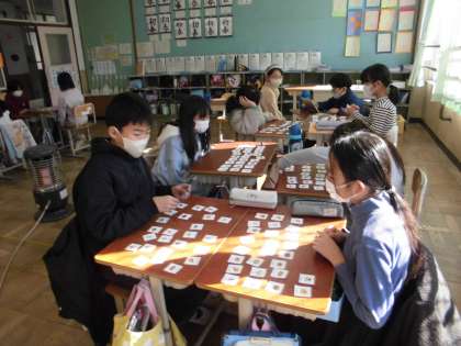 5年生は外国語の学習で丁寧な言い方で料理を注文し合いました。What would you like? I'd like a humberger,French fries,and soda pop.などのやりとりが楽しくできました。