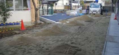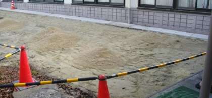 インターロッキングの取外しが終わり、整地をして準備をしています。