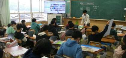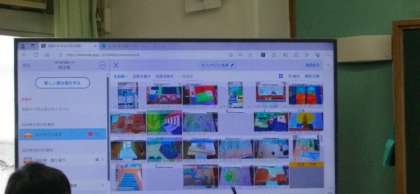 6年生は、絵画作品を撮影してロイロのカードを作成し、互いの作品鑑賞に取り組んでいます。