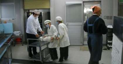 給食の準備が始まりました。