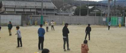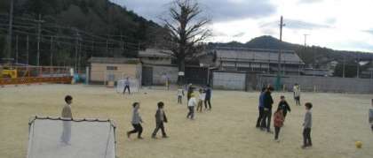 放課後の様子です。いろいろな学年のお友達と先生も一緒にサッカーをしています。